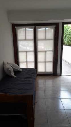 Dormitorio con placard, cama matrimonial y amplio ventanal con acceso al patio con cortina blackout roller.