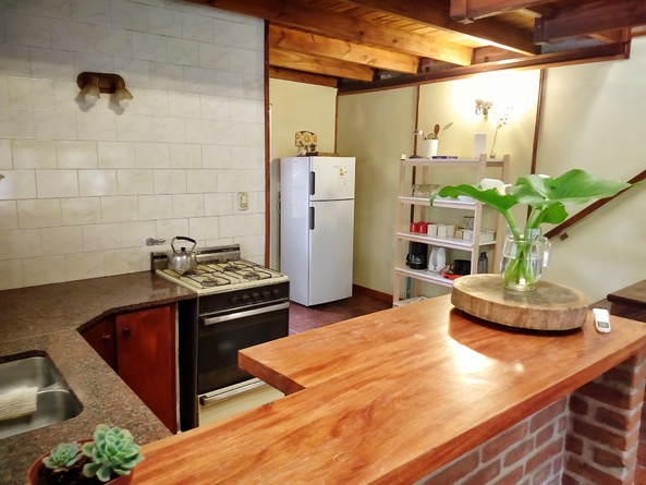 En la planta baja tiene una cocina comedor integrada, muy cómoda. Equipada con todo los utensilios necesarios para la estadía.
