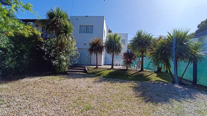 Cabaña prácticamente a estrenar, apta solamente para familias que desean descansar y disfrutar de sus vacaciones, muy segura e iluminada, con un excelente entorno y mucha tranquilidad. La cabaña construida en dos plantas con ventilación y ambientes con gran amplitud, ofrece en planta baja cocina con heladera con freezer, microondas, pava eléctrica, vajilla completa, barra desayunadora, lavarropas y secarropas, living comedor con parrilla interna, SMART TV por cable, aire acondicionado frío/calor, baño. En planta alta cuenta con 3 dormitorios, el principal con cama matrimonial y placard amplio, segundo dormitorio con dos camas individuales, baño en suite y amplio placard, el tercer dormitorio se encuentra en la sala de estar y cuenta con 2 camas individuales y escritorio. Además, la planta alta posee SMART TV en la sala, aire acondicionado frío/calor, baño con ducha y secador de cabello integrado. También ofrece parque con amplio lugar de descanso al aire libre con privacidad, mesa con sillas de exterior, portón corredizo motorizado con entrada para dos vehículos.