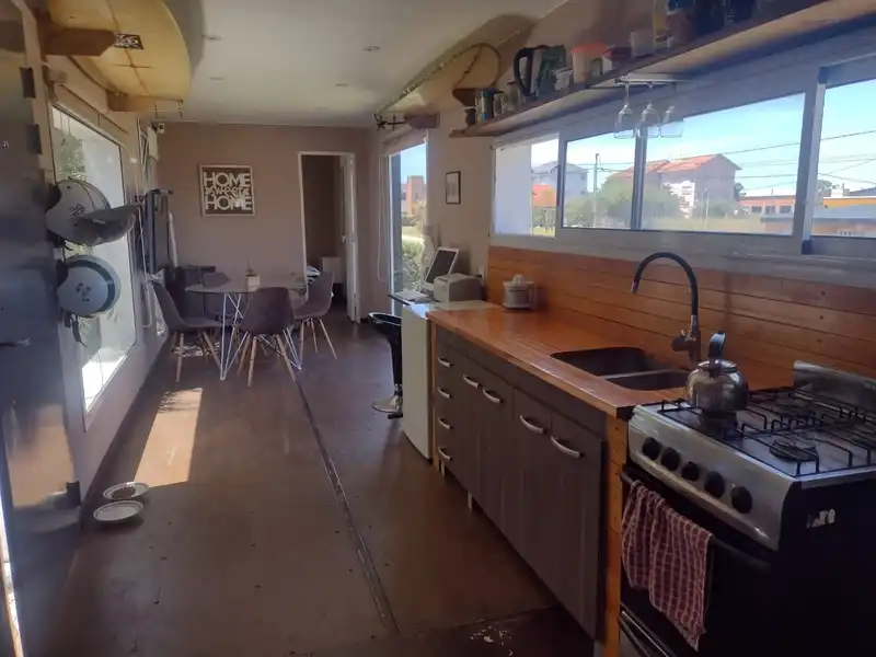 Alquilo cabaña containers en playa del sur balneario San Carlos a 2 cuadras del mar ,cuenta con un dormitorio con cama matrimonial,baño completo y cocina comedor es en planta alta ! Wifi ,Directv Tevé pantalla plana!