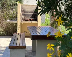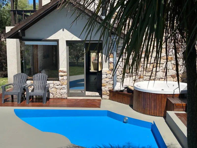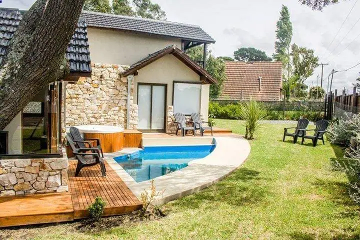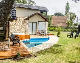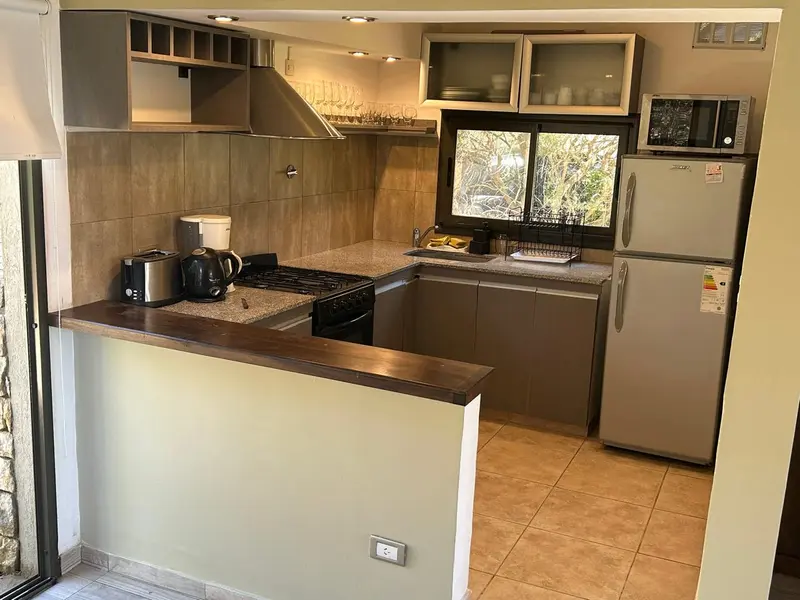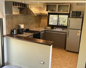 Estan equipadas hasta para 6 personas y cuentan con dos habitaciones ,una matrimonial y otra mas pequeña , cocina completa con barra , living , comedor diario , sector de parrillas privado de cada cabaña y una pequeña área con playon humedo y yacuzzi , ,WIFI y Direct TV , cocheras privadas.