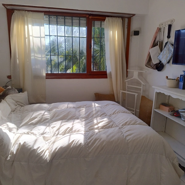 ,para cuatro personas dúplex grande.dos baños ( uno completo) garaje quincho chico . Totalmente equipada......lavar ropas y secarropas.Un dormitorio con cama grande y AC Otro dos camas chicas.
