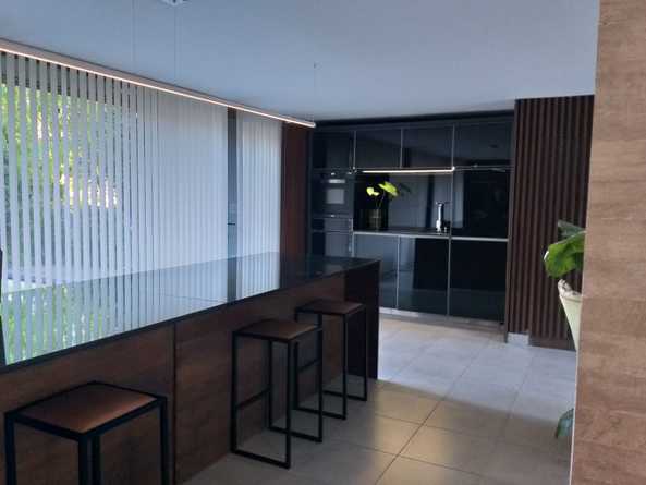 En Planta Baja cuenta con un amplio Cocina-living- comedor con isla de 4 metros. Está equipada con: horno tradicional, horno pizzero, parrilla a gas, horno microondas, cava de vinos, vajilla completa, heladera con frezzer con dispenser de agua fría y fábrica de hielo, lavaropas, Led 46' en pb.