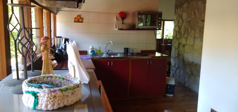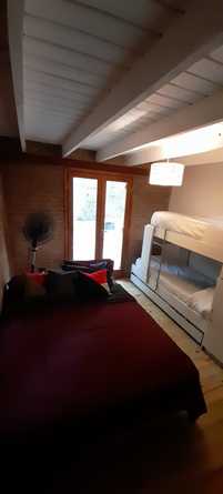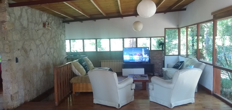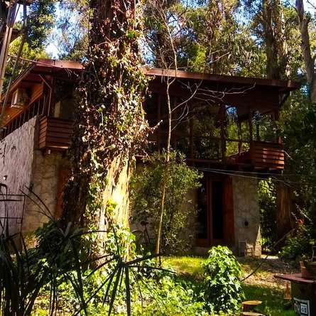 Casa de piedra y madera con gran vista al parque desde arriba al estar toda vidriada, cocina y el living comedor., posee dos habitaciones una en suite con vestidor y jacuzzi capacidad para 12 personas consultar por más huespedes
