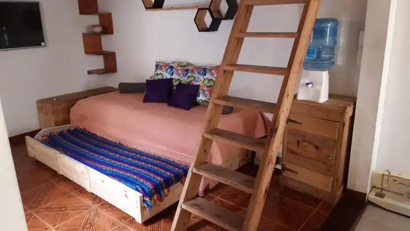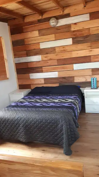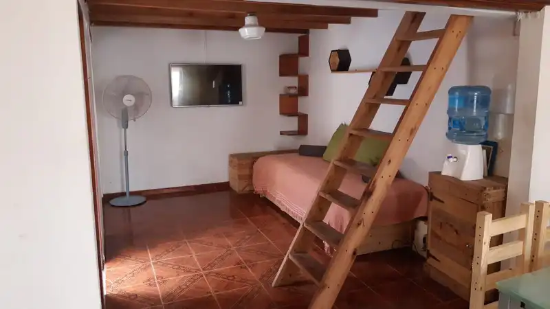 Casa equipada para 4 personas. Planta alta con cama de 2 plazas. La planta baja cuenta con smart, baño, cocina comedor y cama marinera (dos camas)