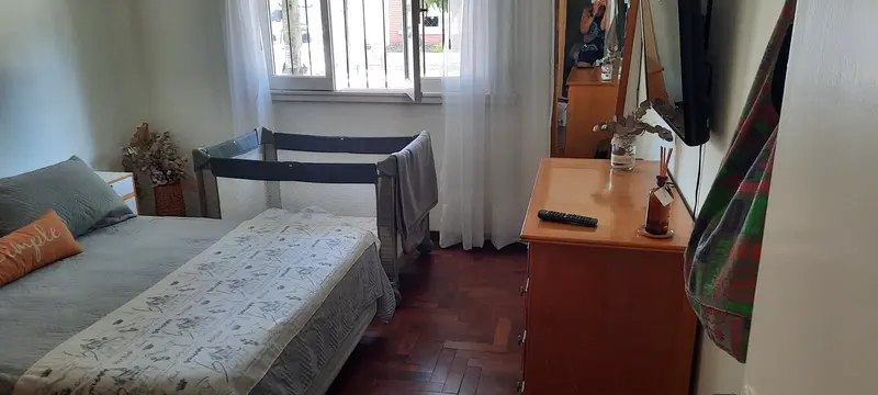 Living comedor con sofá cama, dos dormitorios, uno con cama doble y otro con 3 camas, baño, cocina comedor, cuarto auxiliar, patio, lavadero.