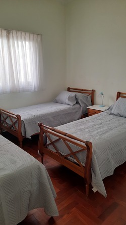 Living comedor con sofá cama, dos dormitorios, uno con cama doble y otro con 3 camas, baño, cocina comedor, cuarto auxiliar, patio, lavadero.