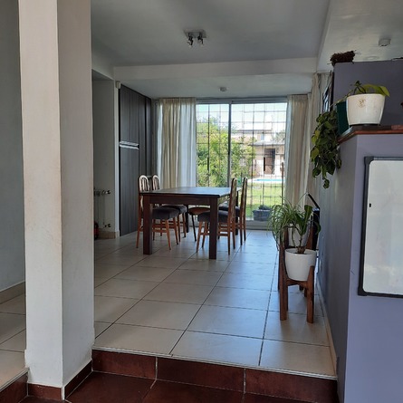 Gran parque con pileta climatizada de 6x3 mt y quincho con baño y parrilla.