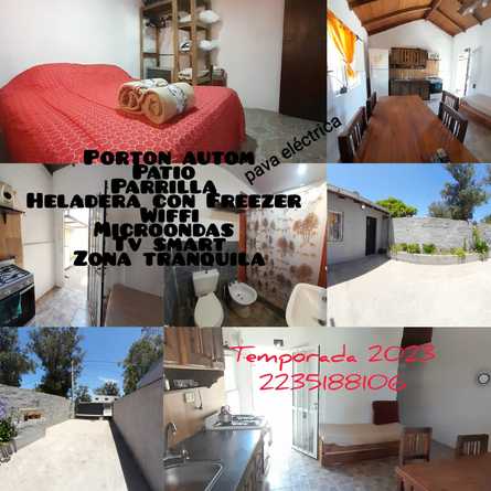 Alquilo casita zona sur Mdp, esta equipada para 5 personas. Tiene todas las comodidades, heladera con Freezer, cocina, microondas, smart, lavarropas automático, pack fútbol, nexflix, Amazon, prime video. WiFi, entrada de auto, portón automático, parrilla. Patio. Estamos en booking e instagram . Hacemos video llamadas para tu seguridad.