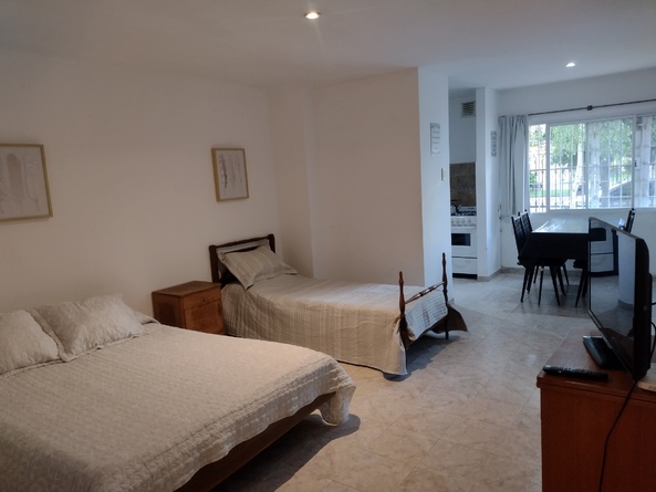 🔸 Planta baja a la calle. Super luminoso 🪟☀️. Para dormir el depto cuenta con: una cama de dos plazas, una cama de una plaza y un colchón de una plaza. Cocina equipada 🍳 Smart TV 🔳 pantalla plana de 42 pulgadas c/ cable. Wifi. Muy seguro, con rejas. Incluye ropa de cama y toalla de mano, pero NO toallones.