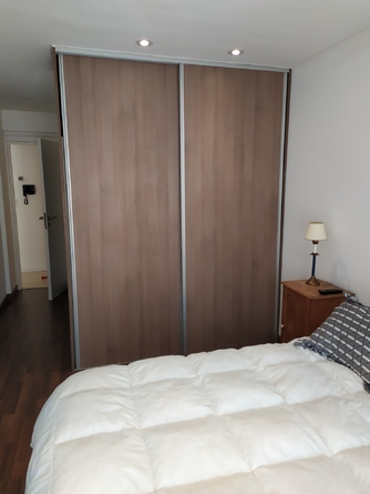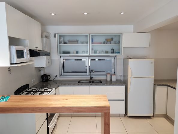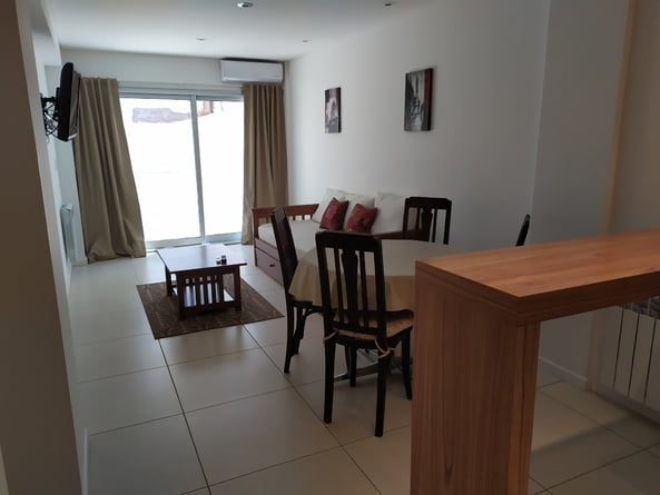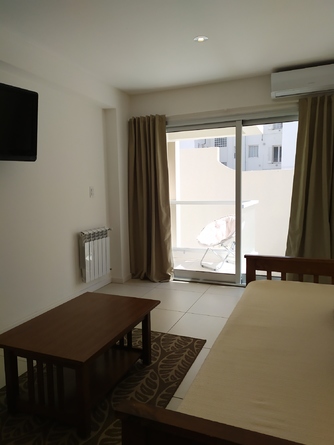 Departamento céntrico en edificio moderno, una habitación dos baños, cocina comedor integrada, balcón al contra frente, muy luminoso