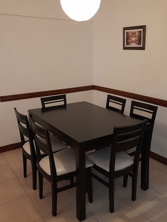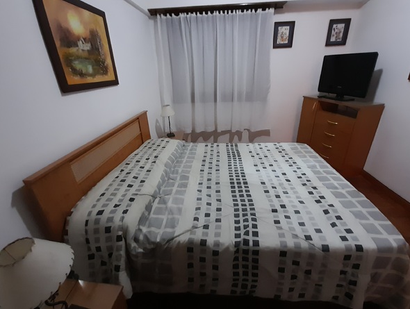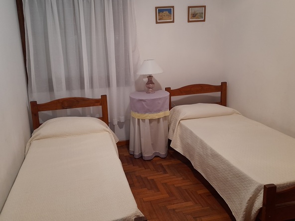Deprtamento 3 ambientes, dos dormitorios, uno con cama matrimonial y otro con 2 camas. Cama marinera en el living para dos personas mas, dos baños. A una cuadra del mar.