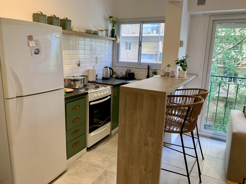 Equipado ideal para dos o tres personas. Se pueden hospedar hasta cuatro personas, con cama dos plaza en un dormitorio y con sofá cama doble en el living.