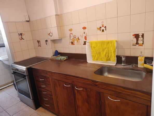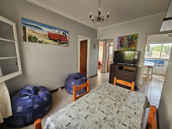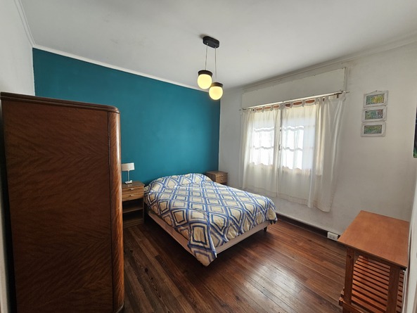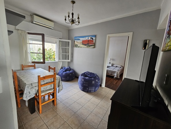 'Departamento de 3 ambientes en Figueroa Alcorta y 12 de Octubre, equipado para 5 personas, una habitacion con cama matrimonial y la otra con tres camas de una plaza, tiene todo para cocinar, horno electrico, microondas, tostadora, pava electrica, incluye sabanas, toallas y toallones. Esta ubicado a metros de la calle principal del Puerto, pasan todas las lineas de colectivos. A dos cuadras del centro comercial gastronomico, supermercados, almacenes, farmacias, todo a mano.