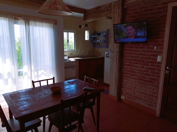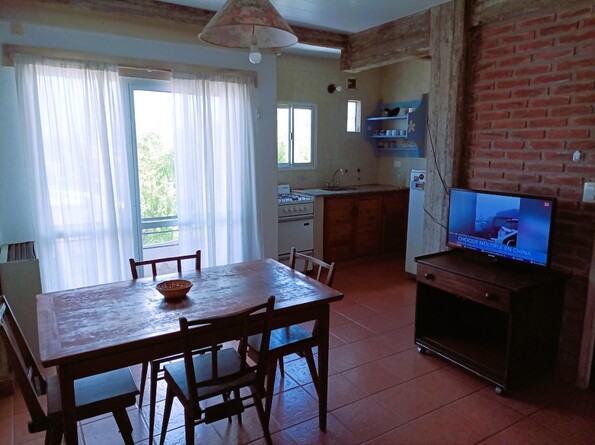 El departamento de 2 ambientes se encuentra en un entorno parquizado y cuentan con estacionamiento, parrilla, TV LED 32", Internet (Wi-Fi) y camaras de seguridad. Todos los departamentos disponen de agua caliente, heladera, cocina o anafe. Las camas se entregan con cubrecama y frazadas. La ropa blanca (sábanas, almohadas y toallas), por ser pertenencias personales, se deben traer.