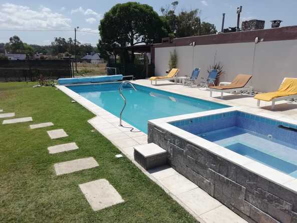 gran parque con Piscina de 10 x 4, Playón húmedo para chicos y jacuzzi para 4 personas. Arcos de futbol, metegol y juegos para chicos.