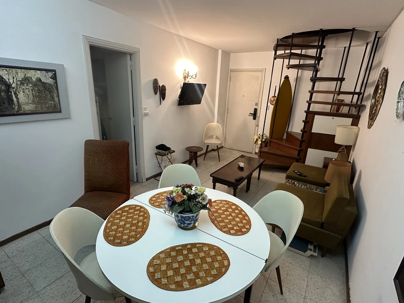DUPLEX en alquiler en la ciudad de Mar del Plata en la calle Bolívar 2118 edificio Palacio Edén, con vistas al mar en la zona del centro frente a la Plaza Colon para 4 personas. Está ubicado en los pisos 16 y 17. El mismo consta de un somier matrimonial y de dos camas individuales tipo cucheta. Posee cocina, baño completo con bañera. WIFI y Flow.