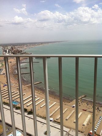 Departamento de 3 ambientes con dependencia y vista PLENA de todos los ambientes al mar y la ciudad con balcón terraza corrido.  Dormitorio principal con cama matrimonial desde donde se ven los mas lindos amaneceres y salida al balcón terraza con vista al mar;  segundo dormitorio con 3 camas singles y vista plena a la ciudad y mar; dependencia de servicio con vista al barrio troncos y baño privado; cocina completa con vista al barrio los troncos y playa grande. baño principal completo con vista a la ciudad;  balcón corrido terraza con mesa, sillas y reposera. El edificio es el Demetrio Eliades (conocido como el emblemático edif. Havanna). Led y Tv. cable, microondas,  wi fi en salón de estar con hermosos sillones y vista al mar, seguridad y conserjería 24 horas y servicio doméstico optativo.   Celu o Whatsapp[utilice el form. o tel. de contacto]o  [utilice el form. o tel. de contacto]