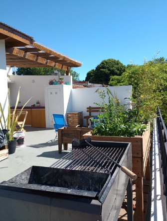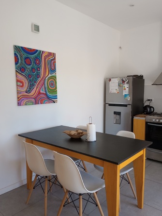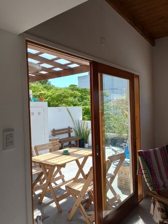 Mi casa es hermosa, con muchísima madera, luz y sol. Son dos dormitorios cómodos, amplios, cocina comedor, living estar y una terraza techada y descubierta muy grande, ideal para disfrutar las noches. Espero recibir especialmente familias!!