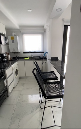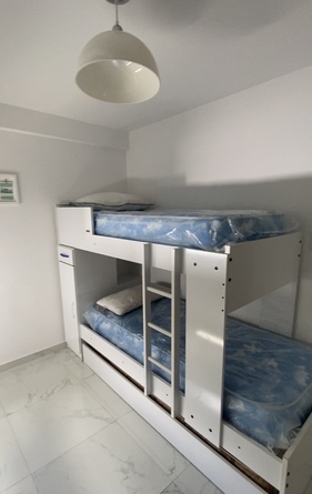 El depto se encuentra en barrio la perla a 3 cuadras del mar y de balnearios, ubicado en av libertad y jujuy, cuenta con 2 cuartos, uno principal (cama matrimonial) y otro con cama cucheta para 3, living comedor con sofacama para dos personas, cocina con barra desayunador, balcon y cochera. Wifi y cochera.