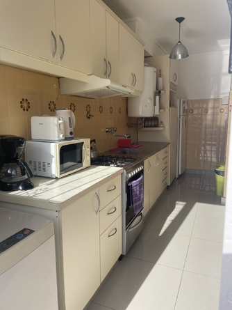 Es un departamento moderno, ubicado a tres cuadras de la playa. Es seguro ya que tiene doble puerta de acceso.