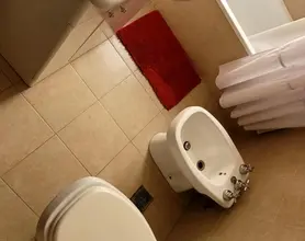 Baño completo con bañera, bidet y tender.