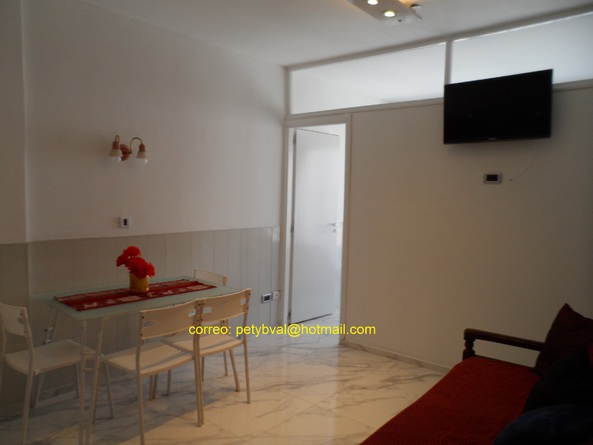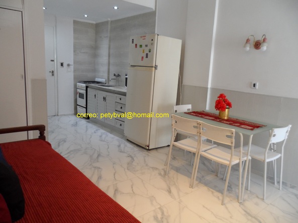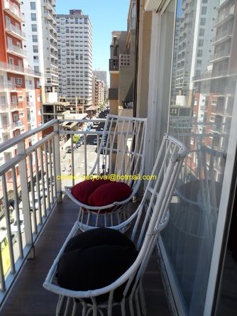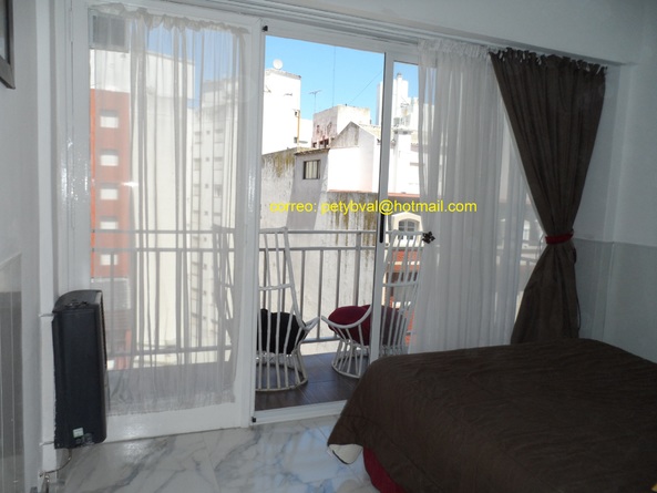 Departamento para 4 personas, al frente, con balcón a la calle. A la izquierda se ve el mar y a la derecha la ciudad. A 50 metros de la playa de Punta Iglesias. A 3 cuadras del Casino. A menos de 100 m los teatros Atlas, América, Refasi, Afro y Mar del Plata. Ubicación ideal. Dormitorio separado con cama matrimonial: sommier y colchón. Calefactor a gas natural. Living comedor: mesa y sillas. Un modular vidriado. Smart TV . Diván cama (dos camas individuales). Heladeras con freezer. Cocina: cocina y horno a gas natural. Mircroondas. Vajilla completa. Wifi. Baño con ducha. No se aceptan mascotas ni grupos de jóvenes.