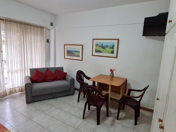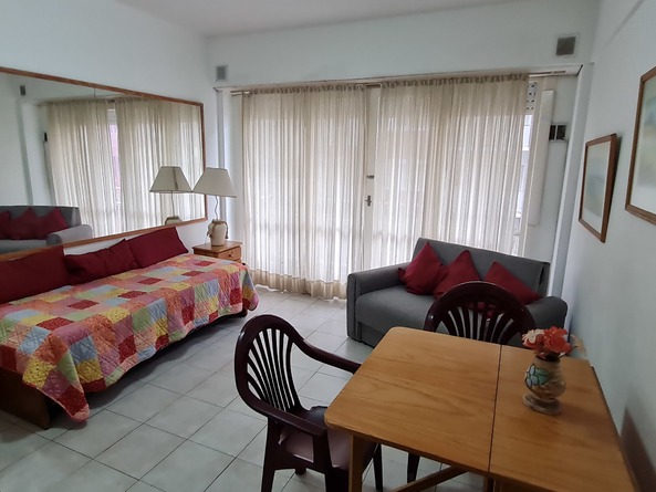 Diciembre $35.000 Tamporada $40.000 Luminoso balcon a la calle con sol por la mañana cruzando la calle esta la bajada a la playa!!! Cochera aparte optativa 2 o 3 adultos Se ve la bocacalle y el mar. El amplio balcón está marcado con círculo negro en la postal de Mar del Plata adjunta. Reciclado,Smart TV, con direct TV por tarjeta Kitchenette con microondas cocina con horno y hornallas a gas, Baño con bañadera y bidet Espejos, lámparas cortinado de pared a pared y techo a piso sobre el balcón. Un sofa cama desplegable doble ancho 1,10 y una cama individual mas con otra que se saca de abajo. Sra Beatriz whatsapp[utilice el form. o tel. de contacto]Si me envias tu whatsup te mando un videito.
