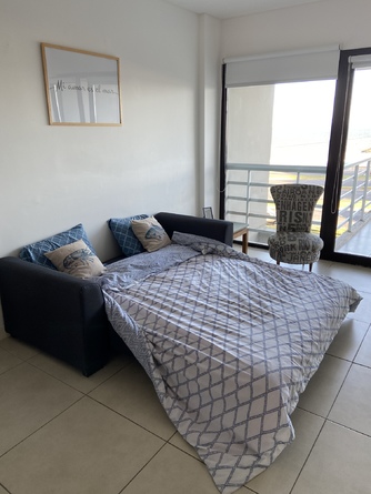Luminoso y cómodo monoambiente en primera línea frente al mar. Gran balcón para pasar mañanas y tardes increíbles disfrutando de una vista única. Baño y cocina completos. Balcón cerrado a contrafrente. Gran placard para guardar todo y amplísimo espacio de esparcimiento. Sillón cama con pillow para tener un descanso acorde a tus vacaciones. WiFi y Cable en SmartTV. Calefacción por radiadores para el frío y ventilador de pie para el verano. Vas a pasar unos hermosos días de descanso!