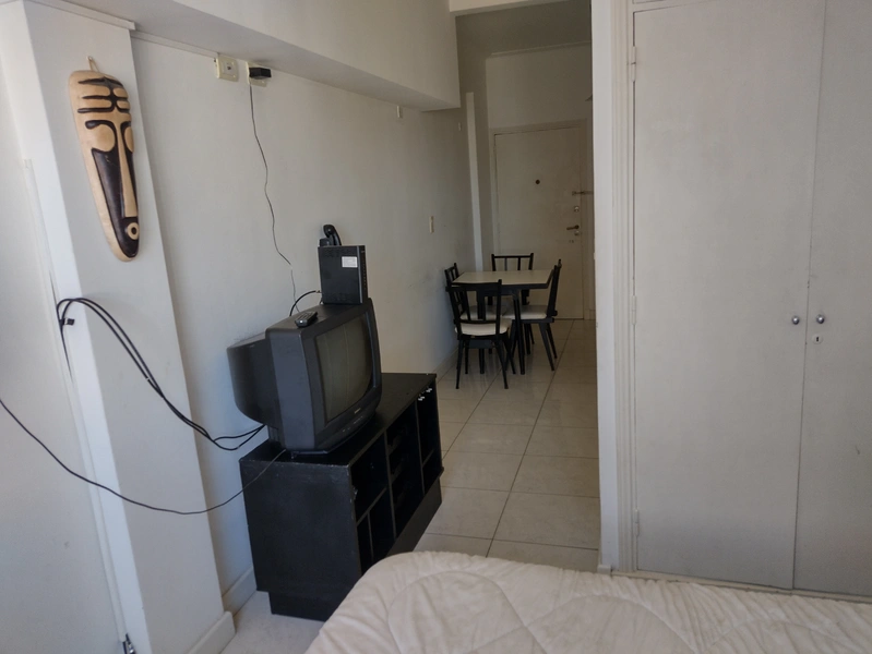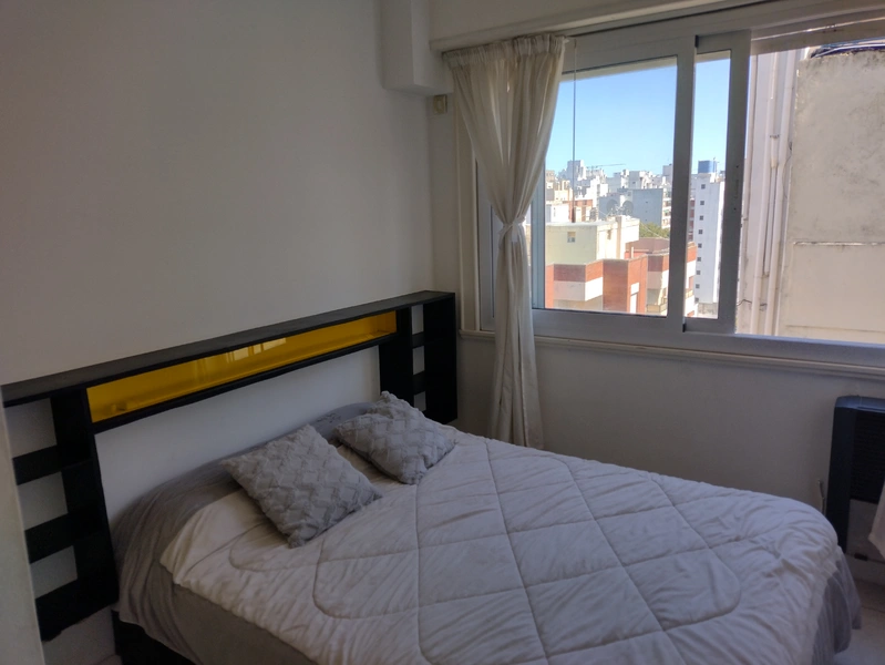 HERMOSO DEPARTAMENTO EN CONTRAFRENTE, A 3 CUADRAS DE LA PEATONAL Y 4 DE LA PLAYA. COCINA TOTALMENTE EQUIPADA, MICROONDAS, CAFETERA ELÉCTRICA, HELADERA CON FREEZER. BAÑO COMPLETO CON DUCHA, DORMITORIO CON CAMA MATRIMONIAL SEPARADO POR UN PEQUEÑO PASILLO DE LA COCINA. TV. CON CABLE, CALEFACTOR CON SALIDA AL EXTERIOR. VENTILADOR DE PIE INCLUYE FRAZADA, NO INCLUYE ROPA BLANCA