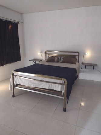 Dormitorio con una cama de Dos plazas, una de una plaza y un catrecito.