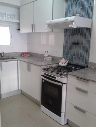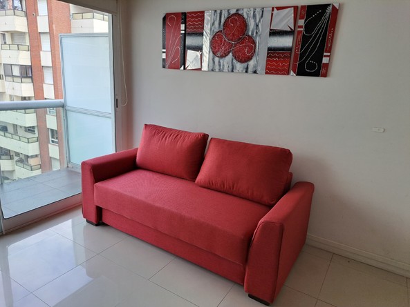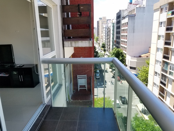 Alquilo departamento muy amplio, semi piso de dos ambientes con balcón a la calle, en un sexto piso, muy luminoso y moderno. Cuenta con un dormitorio con piso flotante, cama de dos plazas, amplio placard, baño casi en suite, pasillo divisor extenso, living con sillón cama de dos plazas, y Smart TV, Comedor con mesa y 6 sillas, cocina completa, con heladera, microondas, extractor, alacenas y bajo mesadas marca Johnson, cuenta con una barra compartimentada. Caldera, loza radiante. Pisos de porcelanato. Portero Visor. Detalles de calidad, Edificio de nueve pisos de 8 años de antiguedad.