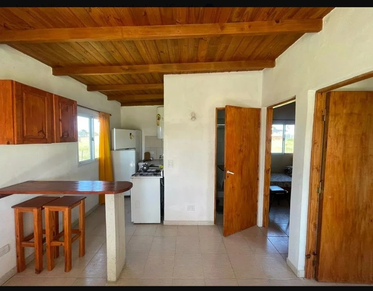 Casas sobre 2000m2 de parque, c/ parrillas, fogón, chulengo, mesas y bancos. Espacio para estacionar dentro del predio. DirecTV c/tarjeta, wifi. Vajilla completa. Termotanque electrónico. Freezer. Horno. Un dormitorio con cuchetas, otro con cama matrimonial. Cocina y baño completo. Comedor.