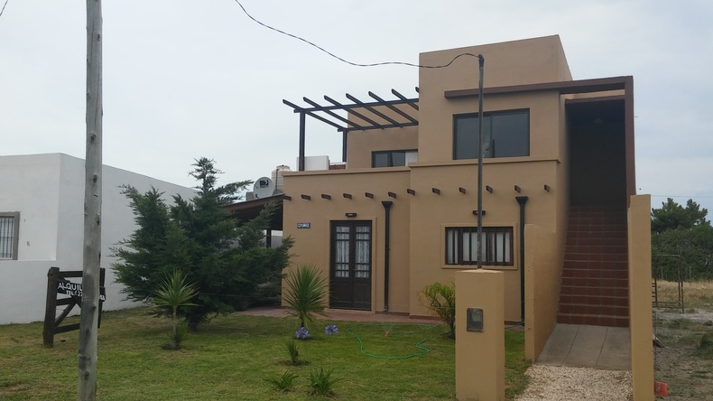 La casa consta de dos habitaciones una de ellas matrimonial y otra con una cucheta y una cama individual; un amplio living comedor, con una cama extra, un baño, galeria cubierta con parrilla, patio trasero con ducha externa y un jardin delantero.