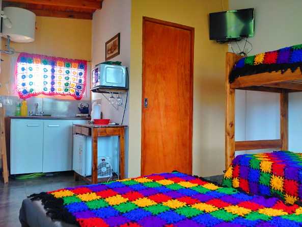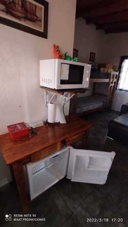 Sofá cama, más cucheta. Distancia del mar 15 cuadras. Despertar con el trinar de los pájaros y contemplar las estrellas por las noches en ambiente natural. Paz total.