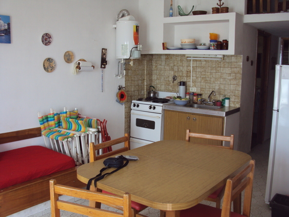 Departamento ubicado frente al mar y a dos cuadras de la calle principal de mar del tuyu (calle 2). CAPACIDAD: 5 Personas. Cuenta con 5 camas individuales: 3 en la habitacion y 2 en el living; tv por cable; heladera con freezer; cochera privada techada; parque trasero con parrilla..