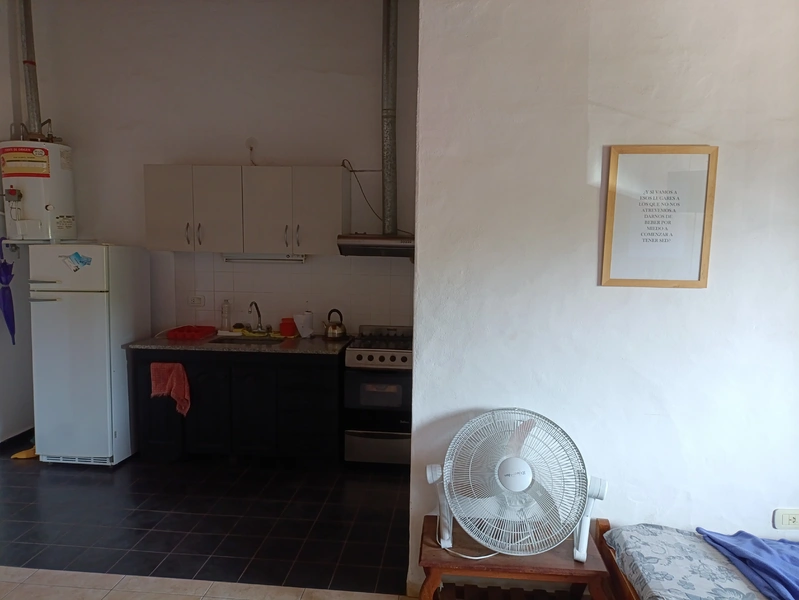 1 cama matrimonial y 2 chicas. 1 habitación, 1 baño y cocina comedor.