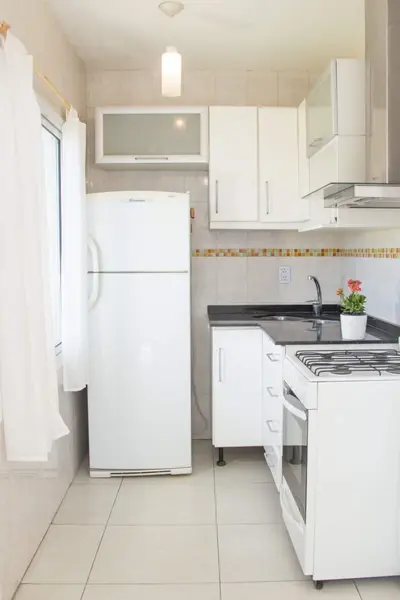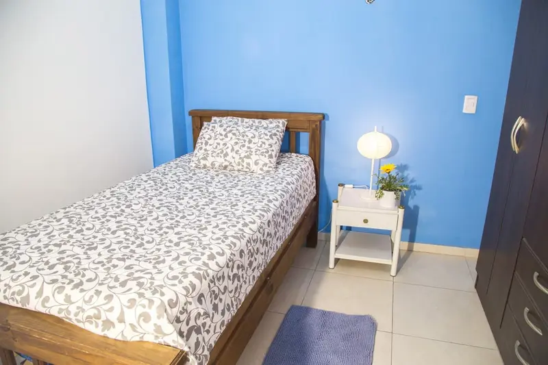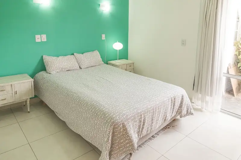 Luminoso departamento tipo casa. Tiene dos dormitorios; living-comedor, cocina, baño, jardín Cuenta con lavarropas, agua caliente, vajilla, ropa de cama, toallas. TV, wifi. Sin aire acondicionado. Muy buena ventilación