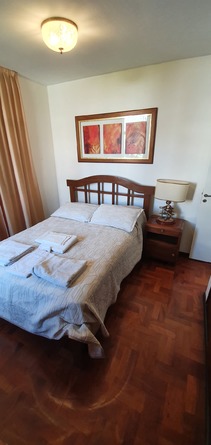 departamento ubicado en pleno centro de la ciudad de mendoza en calle 9 de julio, a una cuadra de peatonal y de calle San Martín, edificio con vigilancia las 24 hs. Cuenta con 2 habitaciones, 1 baño completo, cocina/comedor separado, living, cochera opcional. Tiene aire acondicionado en habitacion y living, televisor led, wifi, se alquila con el servicio de ropa de cama y de toallas.