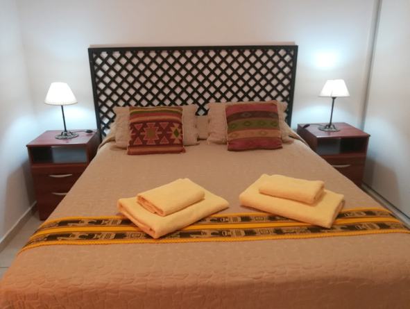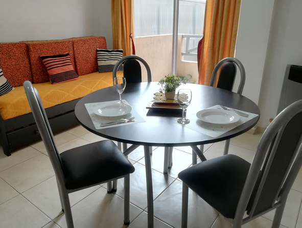 Cómodo y luminoso departamento en el centro de la ciudad de Mendoza. A 3 cuadras de Avenida San Martín y 6 del km. cero. Cochera con portón automático en el mismo edificio. TV Cable y Wifi. Aire acondicionado frío-calor en la sala. Cocina completa con horno. Microondas. Tostador eléctrico, cafetera eléctrica. Heladera. Vajilla y accesorios para 4 huéspedes. Un dormitorio con cama Queen y amplio placar. Ropa blanca, toallas y toallones. Sala comedor con diván que arma dos camas chicas. Amplio baño. Balconcito interno.