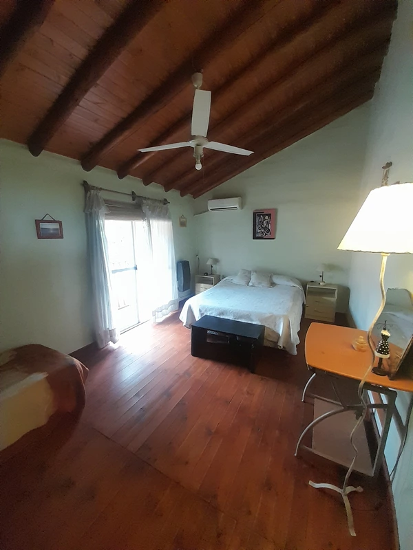 PLANTA ALTA: 2 HABITACIONES EN LA PRINCIPAL TIENE UNA CAMA MATRIMONIAL Y UNA CAMA CHICA, AIRE ACONDICIONADO, BALCÓN CON VISTA A LAS SIERRAS.(cuenta con sabanas, no toallas)
