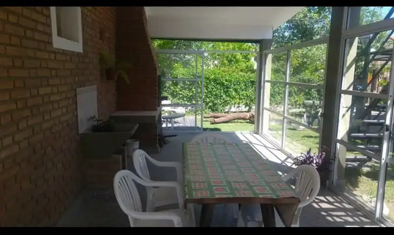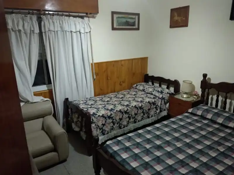 Casa y departamento de veraneo en Mina Clavero, ubicada a 3 cuadras del río y a 9 del centro de la localidad. La casa está en la planta baja y tiene capacidad para 9 personas, el departamento está en la planta de arriba y es para 5 personas, ambas cuentan con baño y cocina equipada, hay servicio de wifi, televisión por satélite (con cargo), ventiladores y heladera con freezer, cuenta con 2 parrillas en la planta baja y cochera para 4 autos medianos, amplio jardín, ubicación en esquina, lugar muy tranquilo y apacible. El valor del alquiler es de $12000.- por día y por persona, el importe que figura de $48000 es por noche y por 4 personas. Cualquier consulta será respondida por whatsapp ÚNICAMENTE.