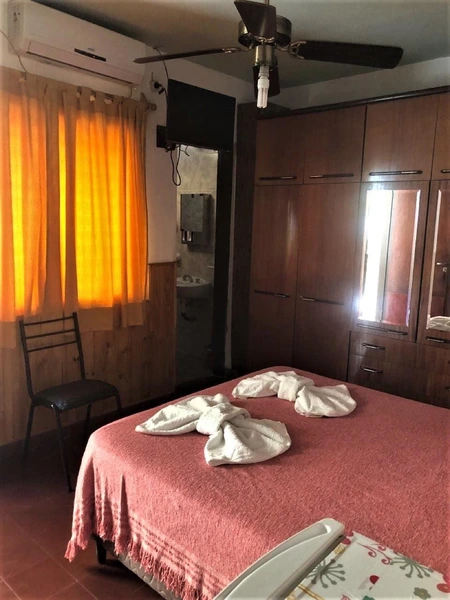 Cuenta con parrilla, parque, piscina, frigobar, aire acondicionado, ventilador, TV con cable, cochera y desayuno.