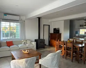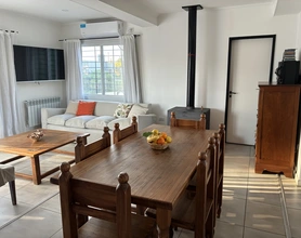 ✔ Living comedor amplio, con aire acondicionado y estufa a leña, perfecto para todas las estaciones. Smart TV de 55'' y cocina integrada completamente equipada: microondas, lavarropas, pava eléctrica, tostadora, heladera con freezer, y más.