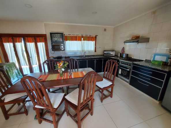 Importante casa de 2 plantas, con un amplio parque quincho con parrilla, ubicada a cuadras del mar. Totalmente equipada. Cuenta con: 3 habitaciones, 3 baños (uno en Suite), living muy espacioso con LCD, Smart TV,WI-FI, Sistema de alarma. Cocina amplia, equipada con microondas, heladera c/ freezer, tostadoras, pava eléctrica, cafetera, licuadora, lavarropas automático y mas.