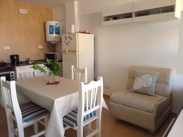 Alquilo departamento totalmente equipado para 4 personas, ubicado a 1 cuadra y media de la peatonal, y a 7 cuadras de las mejores playas de Miramar, excelente entorno, cuenta con cocina totalmente equipada, LED 32p direc tv, WI-FI, sommier de 2 plazas y 2 catres de una plaza.