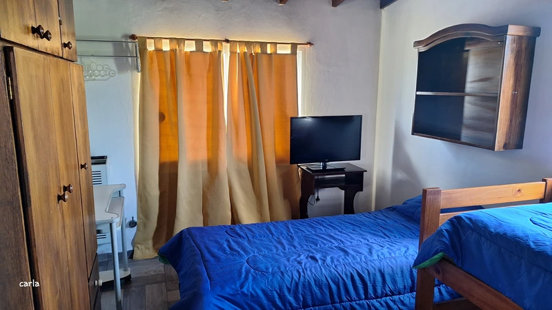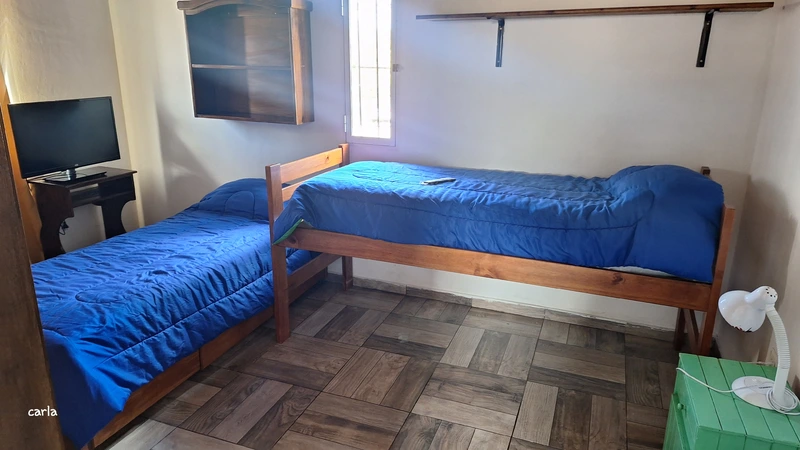 Departamento con 2 habitaciones, garage semi cubierto, cocina comedor totalmente equipada con heladera con freezer microondas pava eléctrica vajilla y batería de cocina. Baño, lavarropas a paleta secarropas, tv por cable wi fi