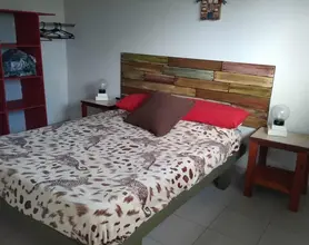 Se compone de un dormitorio con cama matrimonial, el 2do dormitorio con dos camas de una plaza, para una quinta persona hay un sofa cama en el living, frazadas, directv , wifi por fibra optica, heladera con freezer, cocina equipada, vajilla completa,estufas tiro balanceado, ventiladores, jardin, parrilla, entrada de autos.