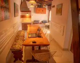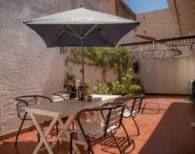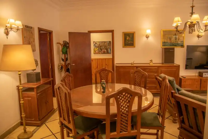 Para 7 personas ,tiene 3 habitaciones ,2 baños , garaje y jardín