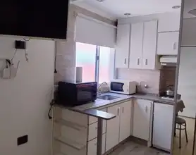 Alquilo hermoso monoambiente. Cuenta con cama rebatible de 2 plazas, 1 cama individual,1 LCD, cable, 1 mesa con 3 sillas, heladera, extractor, anafe, microondas, tostadora, ventilador de techo.